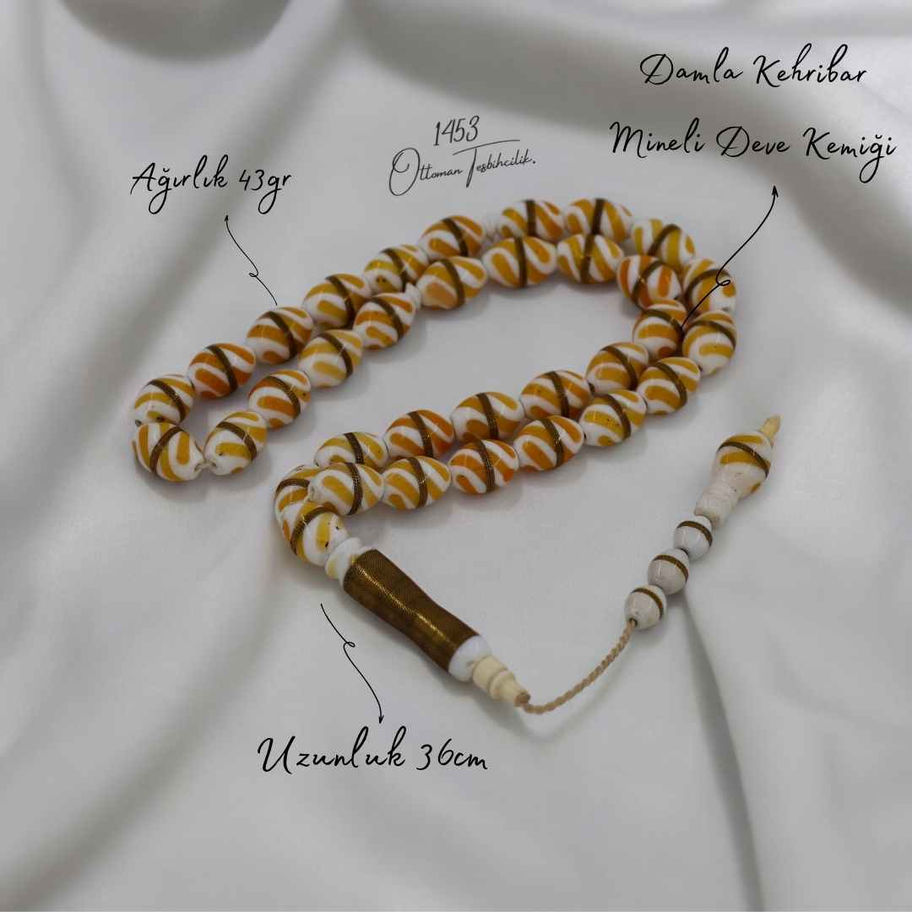 Mineli Deve Kemiği Damla Kehribar Tesbih