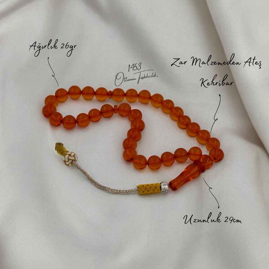 Zar Malzemeden Ateş Kehribar Tesbih, özel tasarımı ve zar malzemeden yapılmış olmasıyla dikkat çeken özel bir tesbihtir. Her bir tanesi, zar malzemenin benzersiz dokusunu ve ateş kehribarın doğal parlaklığını yansıtırken, ruhunuza canlılık verir. Bu tesbih, hem özel tasarımları sevenler hem de estetik değerleri takdir edenler için mükemmel bir seçimdir. Zar malzemeden ateş kehribar tesbihte özel tasarım detayları ve doğanın zarif dokusu bir araya gelir. Her anınıza özgünlük ve anlam katmak için ideal olan bu tesbih, ruhunuza ferahlık ve neşe katmaya hazırdır.